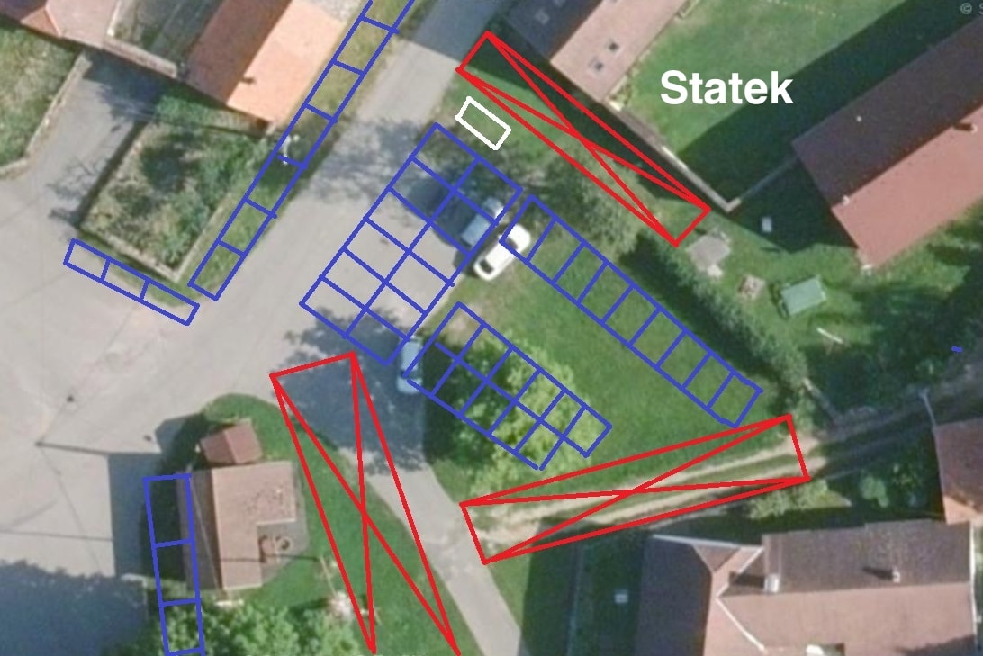 Na modrých místech lze parkovat.